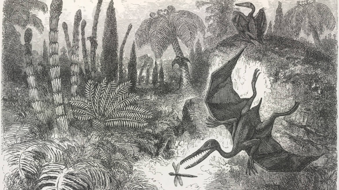 The ancient flying reptiles roamed the skies 86 million years ago, during the Cretaceous period, at around the same time as dinosaurs. The creature had a huge wingspan, measuring up to about 30-feet long.