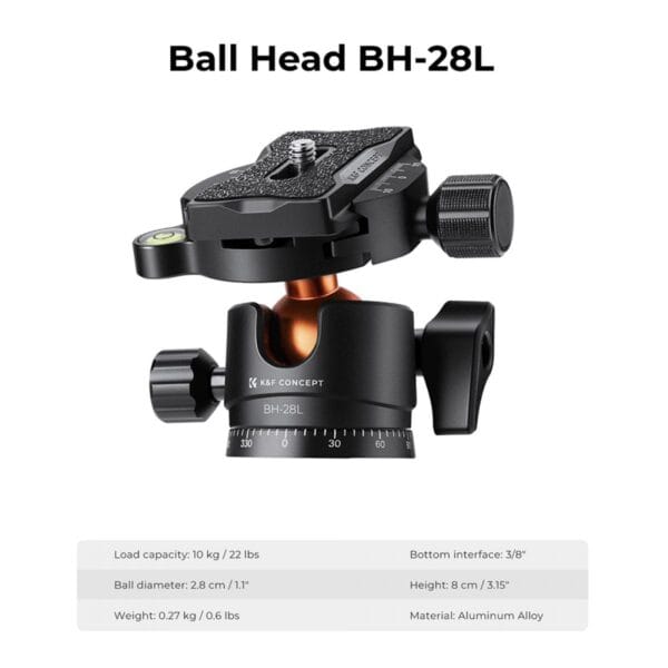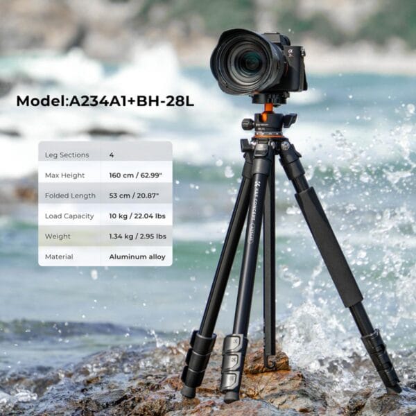 K&F Concept A234A1+BH-28L Aluminum Tripod KF09.099V1